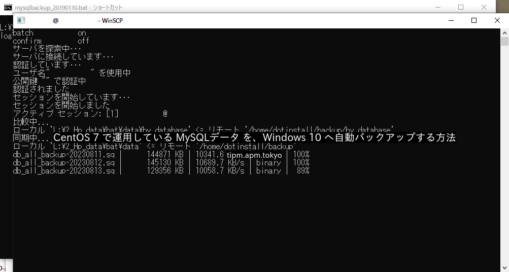 CentOS 7 で運用している MySQLデータ を、Windows 10 へ自動バックアップする方法(2018~2024)